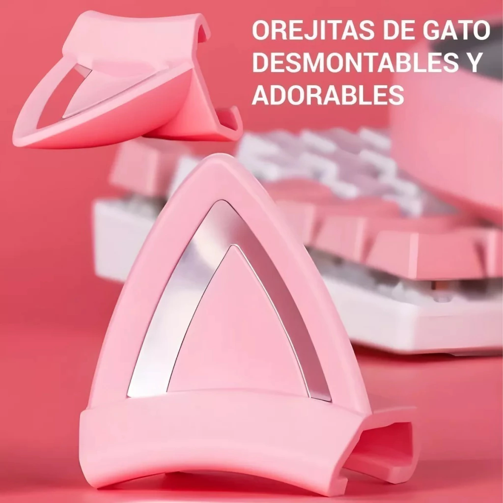 -Con un diseño único y llamativo, estos auriculares son el complemento perfecto para cualquier jugador apasionado. Con sus orejas de gato extraíbles y luces LED multicolores, destacarás en cualquier lugar.