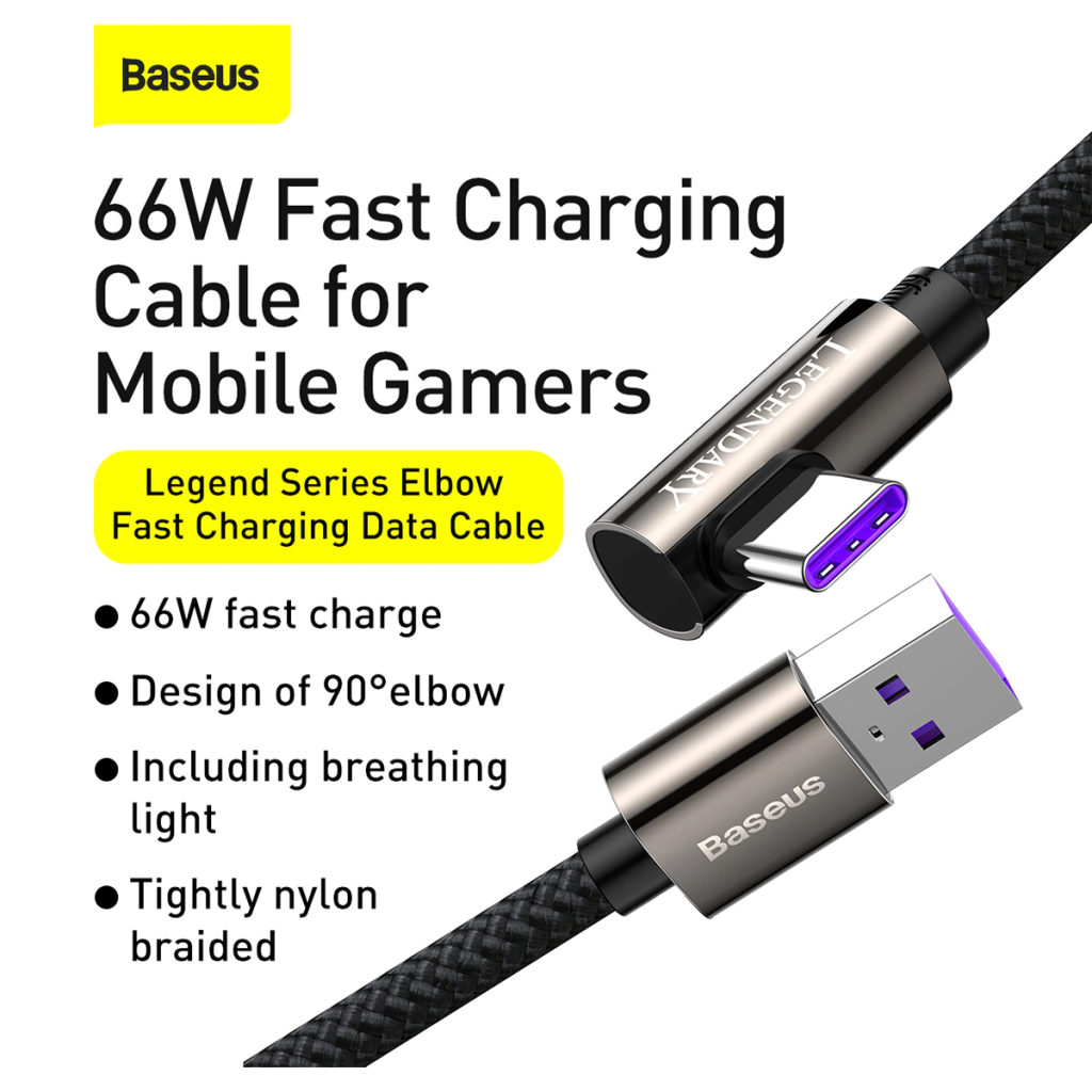 El Cable de Carga Rápida USB a Tipo C 66W Baseus Legend Series Elbow es un accesorio confiable con una trenza de nailon que asegura su durabilidad y evita enredos molestos.