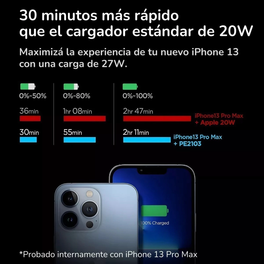 Disfrutá de una carga rápida y eficiente con el ArcStation™ Pro 27W. Compatible con dispositivos Apple, Samsung y todos los que cuenten con USB-C, ofrece hasta 27W para iOS y 25W para Android.