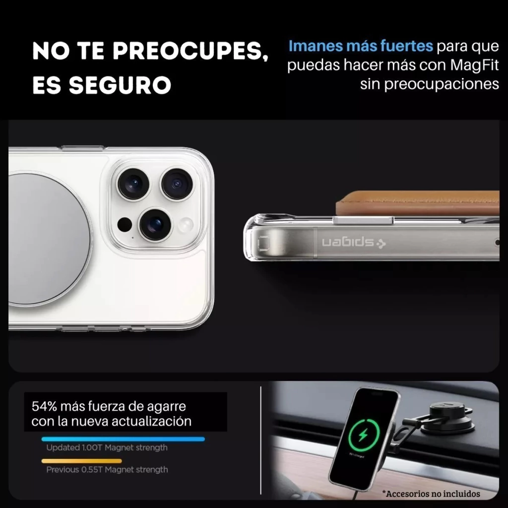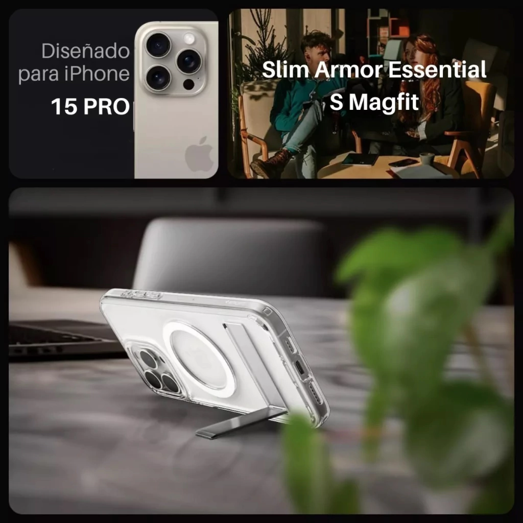 Ajuste preciso y materiales duraderos, el estuche Spigen Slim Armor Essential S MagSafe protege contra rasguños, caídas y otros daños.