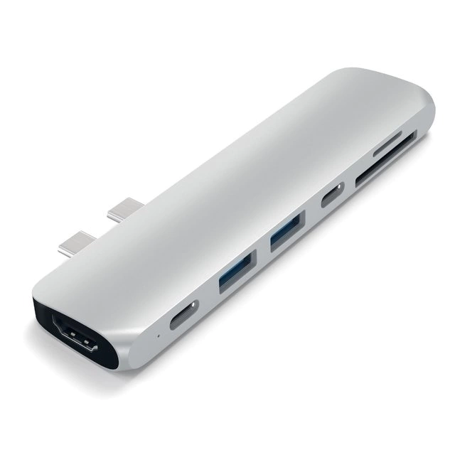 - Este adaptador Satechi cuenta con un puerto Thunderbolt 3, puerto USB-C, 2 puertos USB 3.0, 4k HDMI y un lector de tarjetas SD / Micro.