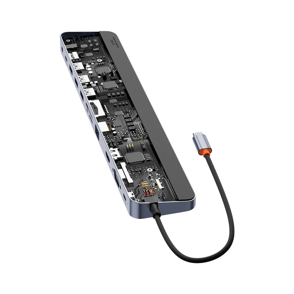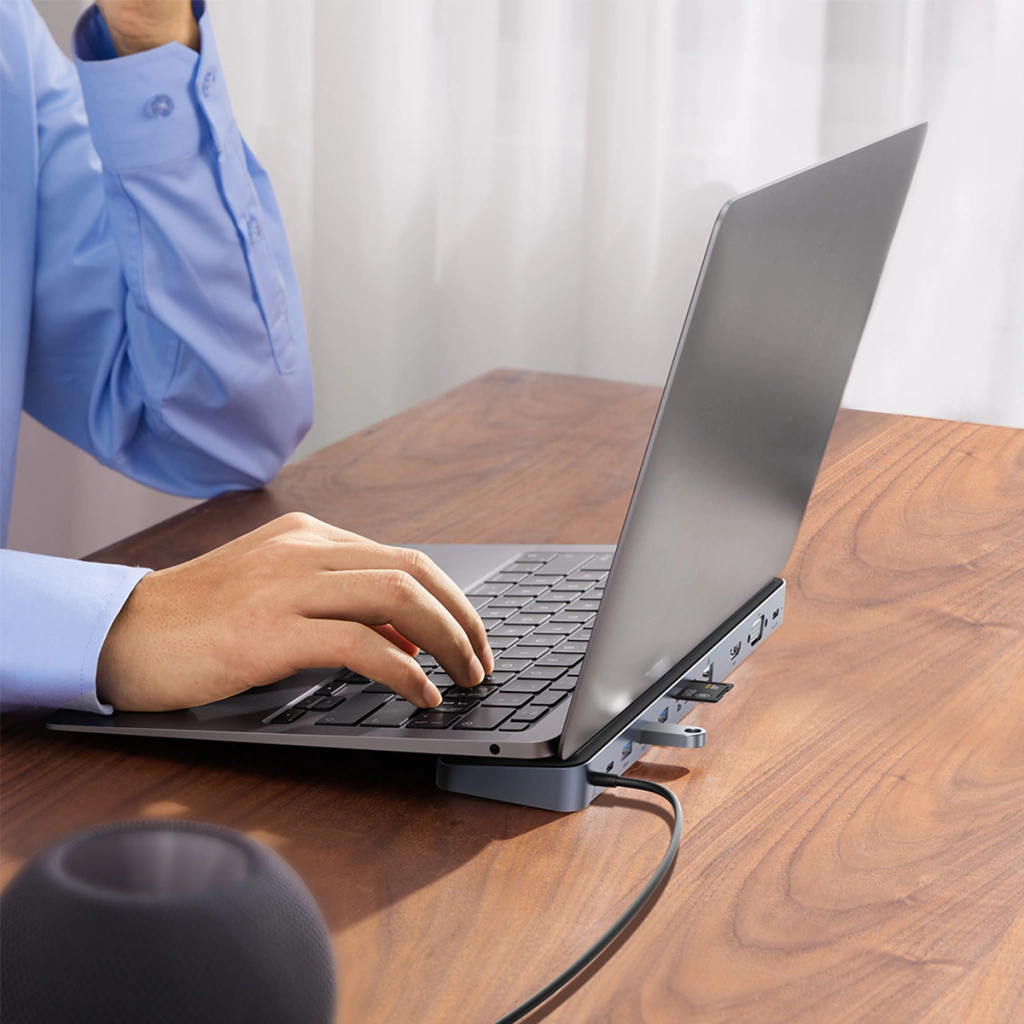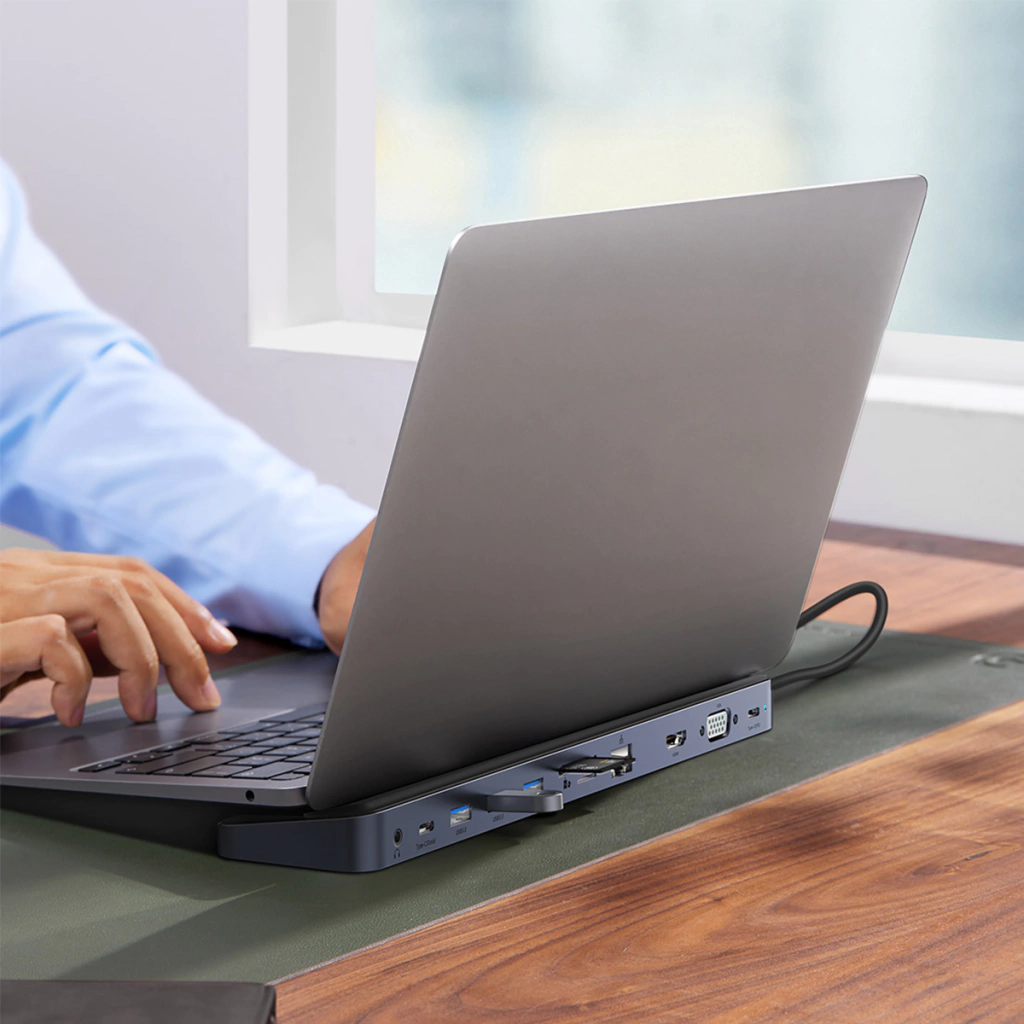 Baseus EliteJoy Gen2 es un HUB universal con muchos puertos adicionales, que también es un soporte para computadora portátil. Está equipado con 11 conectores diferentes, lo que aumenta significativamente la productividad y la eficiencia. Con él, puede conectar un monitor adicional, un cable de red, una tarjeta de memoria, auriculares mini Jack de 3,5 mm y otros dispositivos USB a su computadora portátil. Fabricado en aluminio de alta calidad, que se caracteriza por una construcción sólida. Las almohadillas de silicona protegen eficazmente el escritorio contra rasguños y movimientos accidentales del dispositivo. Gracias a las salidas de vídeo integradas (HDMI 1.4 / VGA), puede mostrar la imagen en un monitor adicional en dos modos, copiando o ampliando el escritorio.
