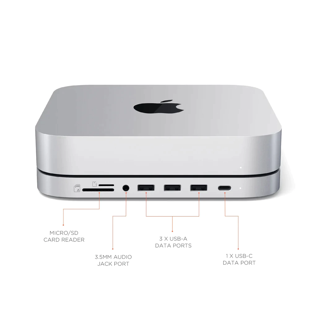 SEl Satechi Stand & Hub para Mac mini con SSD Enclosure eleva y transforma su M1 Mac Mini en una estación de trabajo potente y sorprendentemente compacta. Con un puerto de datos USB-C, tres puertos de datos USB-A, lectores de tarjetas micro/SD, puerto para auriculares de 3,5 mm y ahora equipado con una carcasa SSD interna, para brindar un acceso conveniente a todos sus periféricos. Optimizado para M1 Mac Mini, Satechi Stand & Hub se convertirá rápidamente en una extensión natural de su espacio de trabajo moderno.