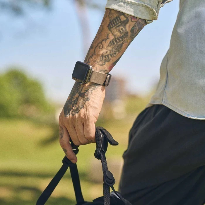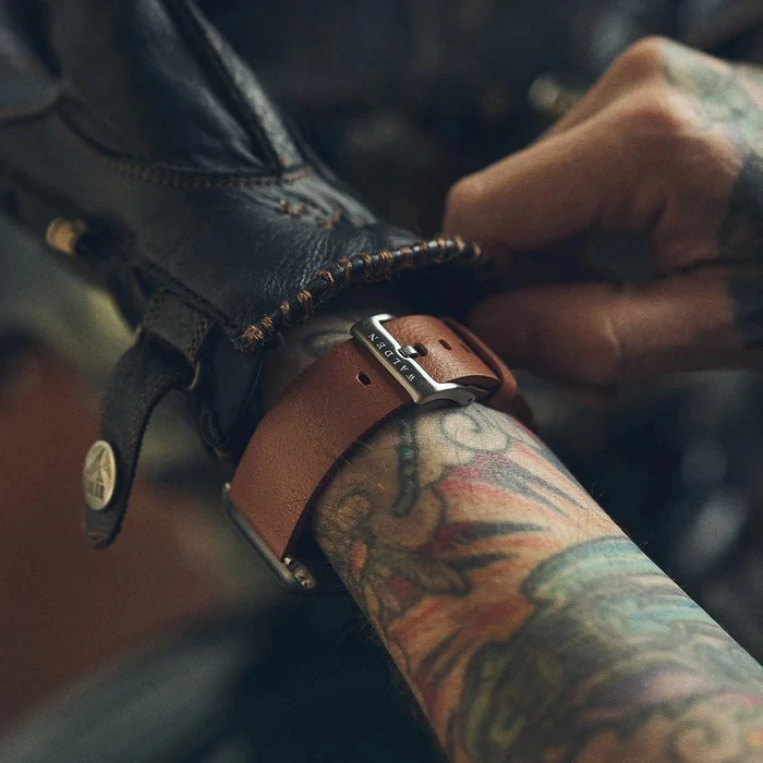 Diseño minimalista y filosofía urbana confluyen en una correa de cuero sofisticada y de alto rendimiento para lucir con cualquier look cotidiano. Elaborada con cuero genuino sin costuras y de la más alta calidad, cada pieza desarrolla una pátina suave y rústica que se embellece aún más con el paso del tiempo. Su diseño artesanal junto a los mejores materiales de su clase le darán a tu Apple Watch un acabado clásico con una personalidad única.