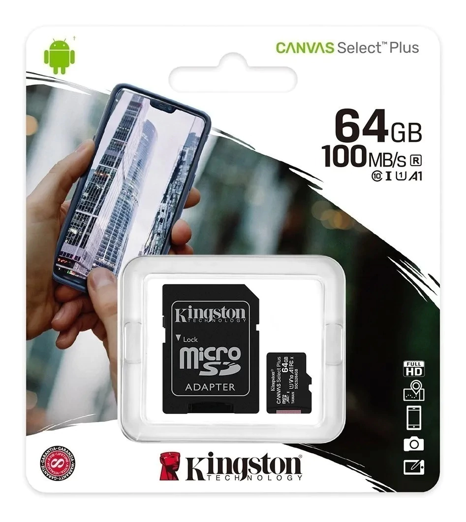 La microSD Canvas Select Plus de Kingston es compatible con dispositivos Android y está diseñada con un rendimiento de calificación A1. Ofrece una velocidad y capacidad mejoradas para cargar más rápido las aplicaciones y capturar imágenes y videos en múltiples capacidades de hasta 512GB*. Potente en rendimiento, velocidad y durabilidad, la microSD Canvas Select Plus está diseñada para ser confiable al tomar y desarrollar fotos de alta resolución o al filmar y editar videos Full HD. Las tarjetas Kingston Canvas han sido probadas para ser resistentes en los entornos y condiciones más difíciles, por lo que puede llevarlas a cualquier parte con la seguridad de que sus fotos, videos y archivos estarán protegidos.