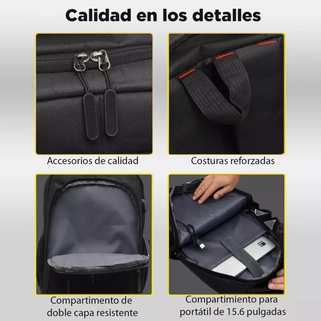 -Funcionalidad Versátil, con un puerto USB integrado, podrás cargar tus dispositivos electrónicos sobre la marcha. Además, cuenta con un compartimento especial para tu notebook de hasta 15,6 pulgadas o tu tablet, así como un espacio para documentos de tamaño A4. Los bolsillos internos y externos te brindan aún más organización y comodidad.