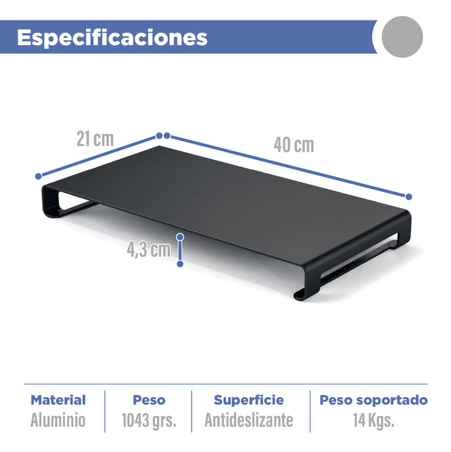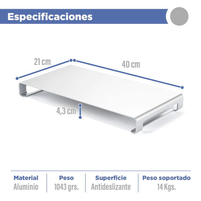 Con su diseño delgado y minimalista, este soporte complementa perfectamente el estilo de tu MacBook o iMac. Su construcción resistente y duradera proporciona una base estable para tu dispositivo, mientras que su diseño de bajo perfil ocupa un espacio mínimo en tu escritorio.